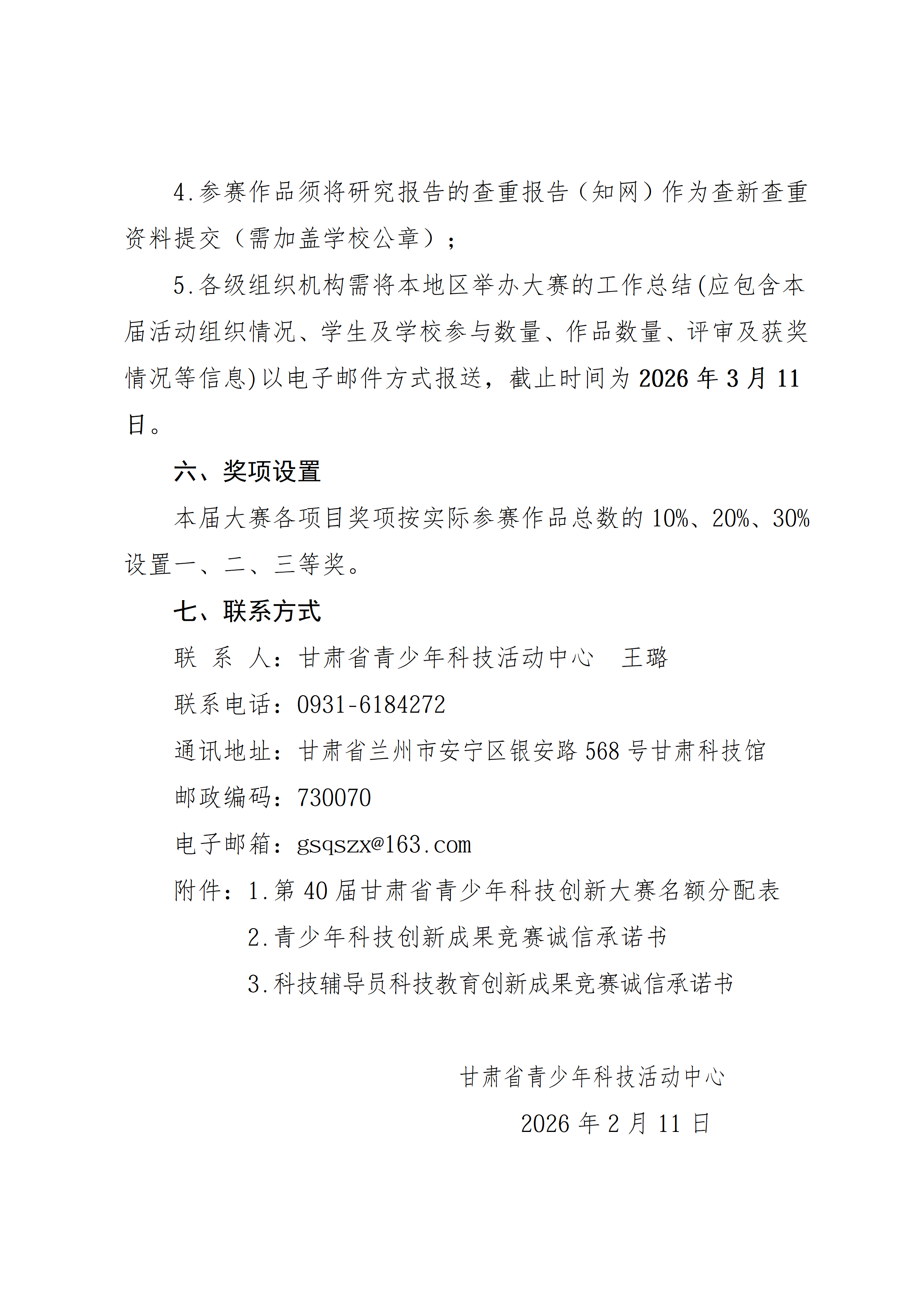第40届甘肃省青少年科技创新大赛(暨2026年甘肃省科创大赛成果展示活动)