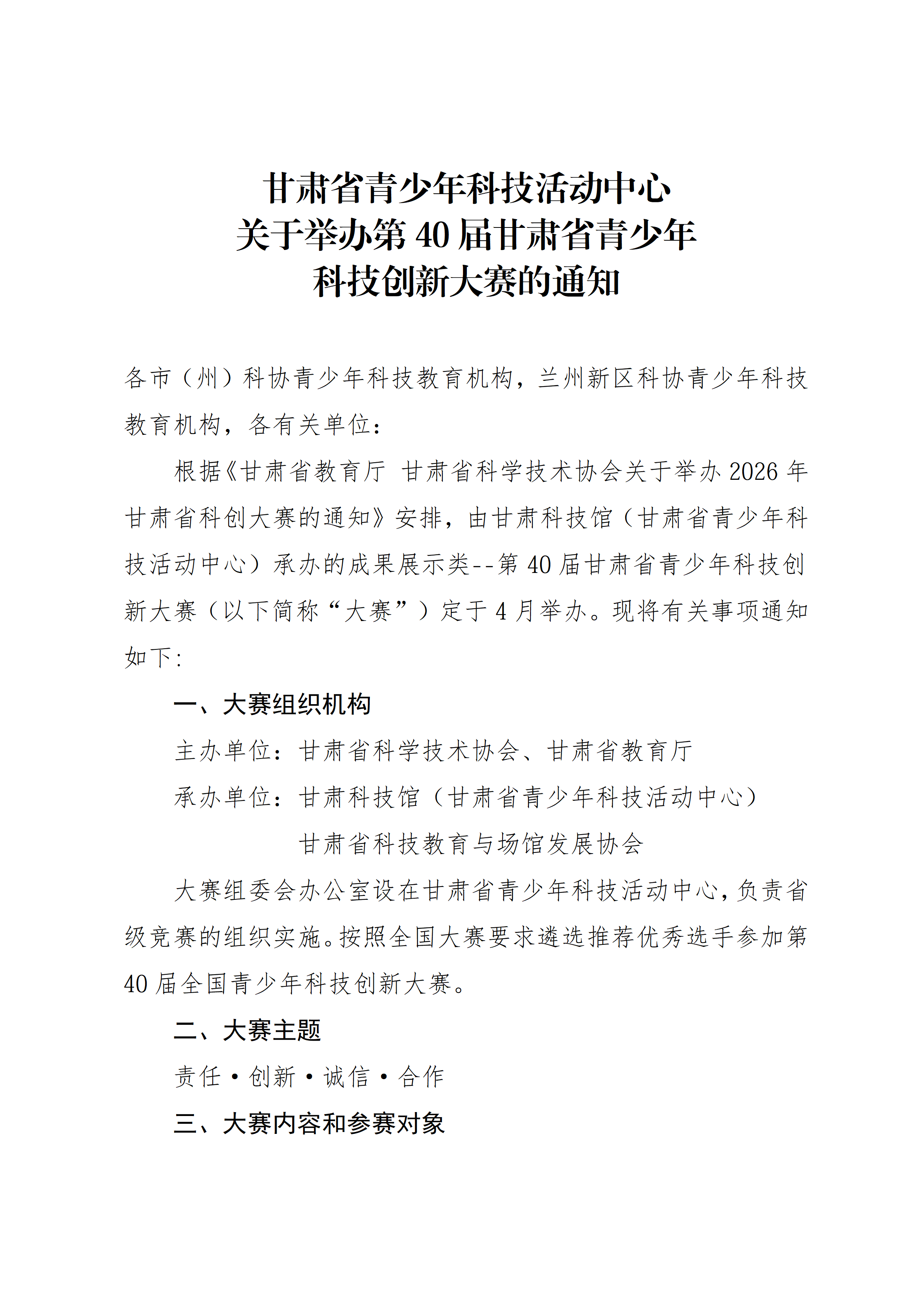 第40届甘肃省青少年科技创新大赛的通知